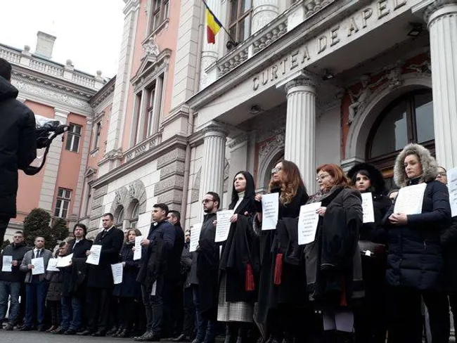Magistrații clujeni, protest nou în fața Palatului de Justiție, după „oferta” lui Toader pe OUG 7