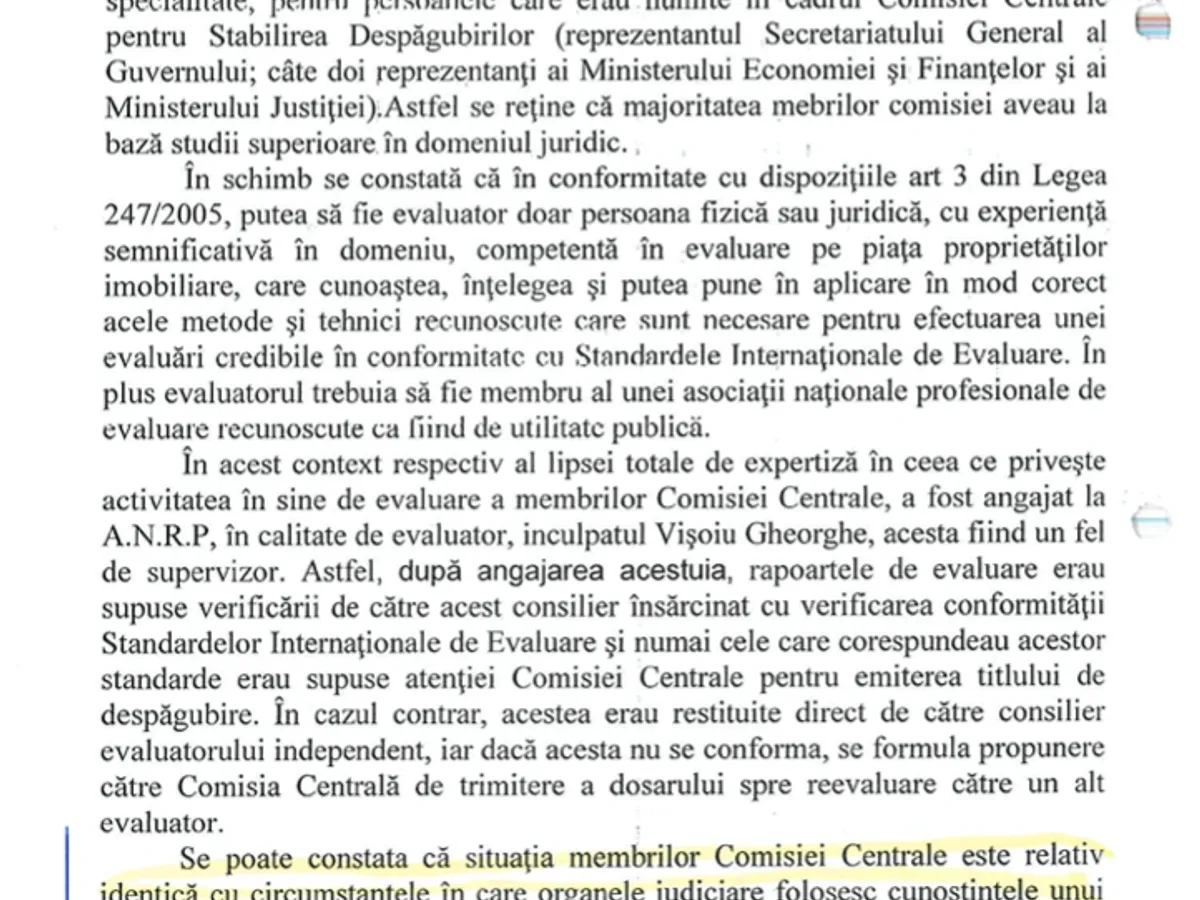 Tot judecătorii de la ÎCCJ au scris și că acești experți existau la nivelul Autorității Naționale pentru Restituirea Proprietăților (ANRP) și că acești experți erau cu totul responsabili pentru stabilirea valorilor imobilelor, nu membrii Comisiei Centrale.
