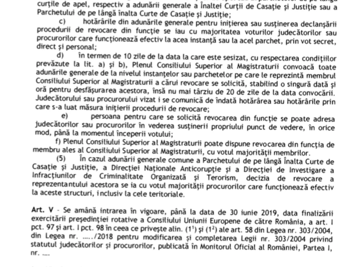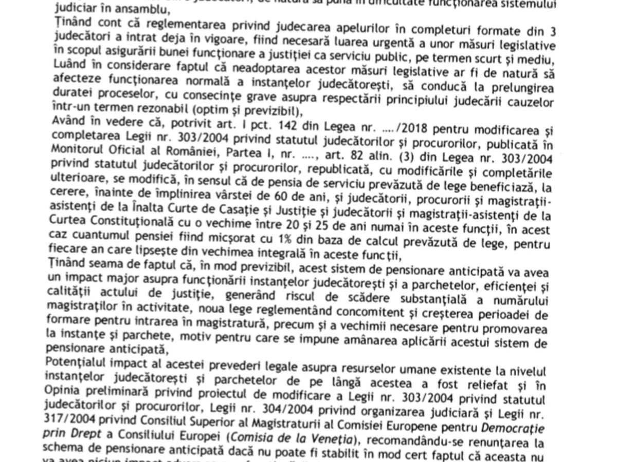 Una dintre modificările aduse legilor Justiției prevede că magistrații nu se vor mai putea pensiona anticipat până la data de 31 decembrie 2022.
