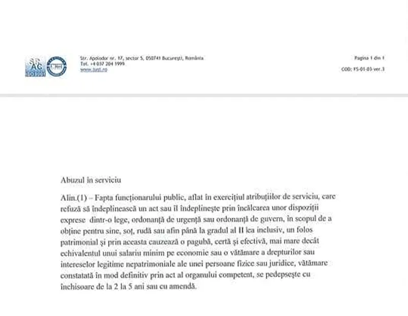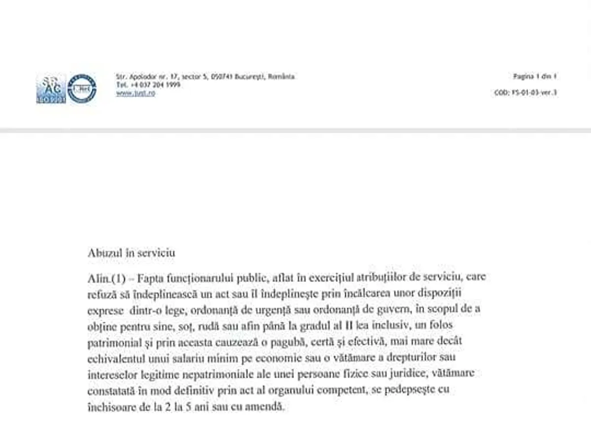 Ministerul Justiției a propus ca pedeapsa pentru abuzul în seriviciu să fie închisoarea de la 2 la 5 ani sau amendă.