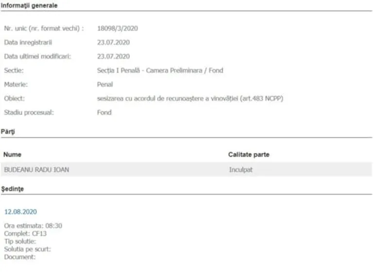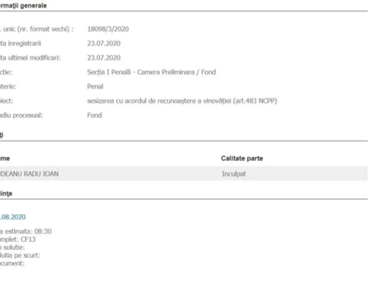 DNA a sesizat Tribunalul București, în acest caz, pe 23 iulie, iar primul termen de judecată a fost stabilit pe 12 august, conform sursei citate.