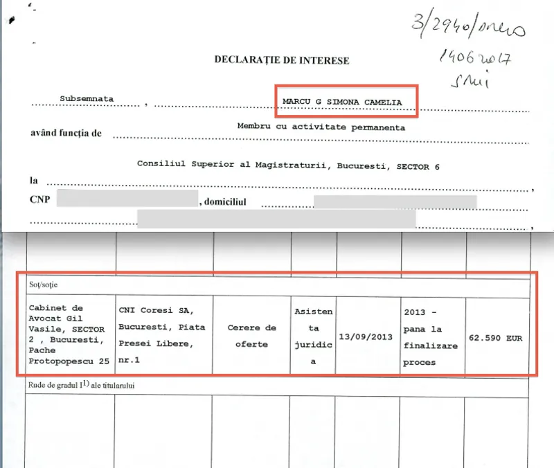 Suma negociată de avocatul Gil Vasile (care a obținut contractul în urma unei cereri de ofertă) a fost de 62.590 de euro (informația apare în declarația de interese a noii șefe a CSM, judecătoarea Simona Camelia Marcu, soția lui Gil Vasile). (sursa)