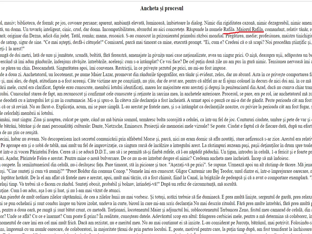 Incompatibilitatea, absurdul au aici concreteţe. Răspunde la numele Rafila. Maiorul Rafila, comandant, relativ tânăr, roşcat, masiv, afişând o excesivă eleganţă vestimentară; originar din Dezna, adică din judeţ. Tatăl, român; mama, rusoaică. S-au cunoscut în prizonieratul primului război mondial. (istoricul Mădălin Hodor susține că Rafila senior s-a născut în URSS n.red.)