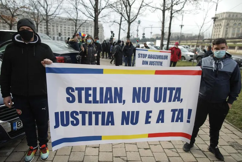 Zeci de oameni protestează în fața Ministerului Justiției pe fondul nemulțumirilor față de decizia actualei coaliții de guvernare de a desființa SIIJ. Oamenii au pancarte cu mesaje pentru Stelian Ion, ministrul Justiției.