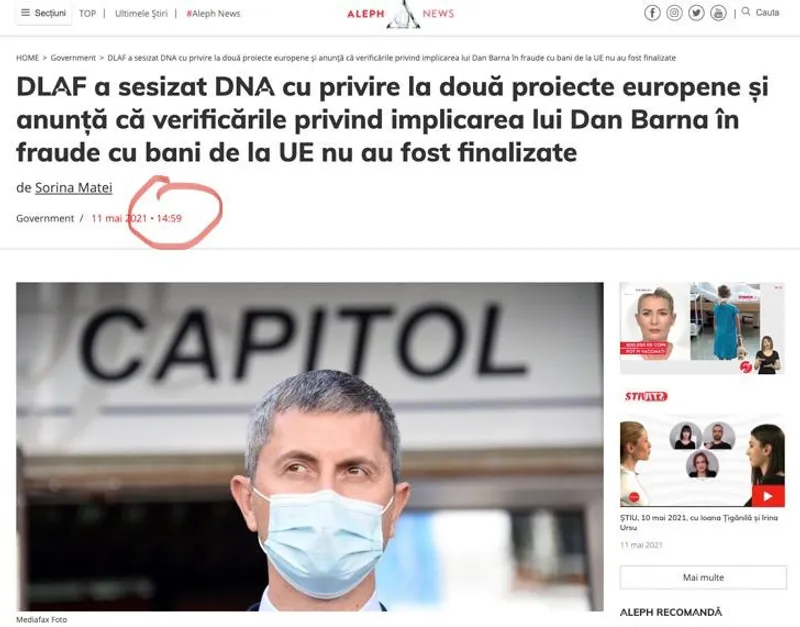 După trei ore și un minut - mai precis la 14.59 - se trezește și jurnalista Sorina Matei de la trustul “new media” al lui Adrian Sârbu. Și scrie o știre copiată, cuvânt cu cuvânt, după știrea noastră. Cu o singură deosebire. Cică informațiile dumneaei ar fi dintr-un răspuns al DLAF, venit „la solicitarea Aleph News”.