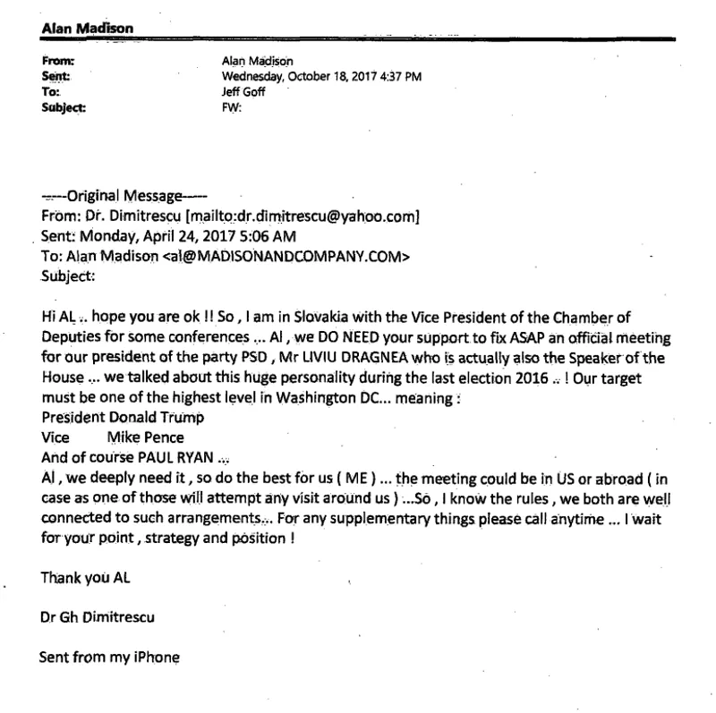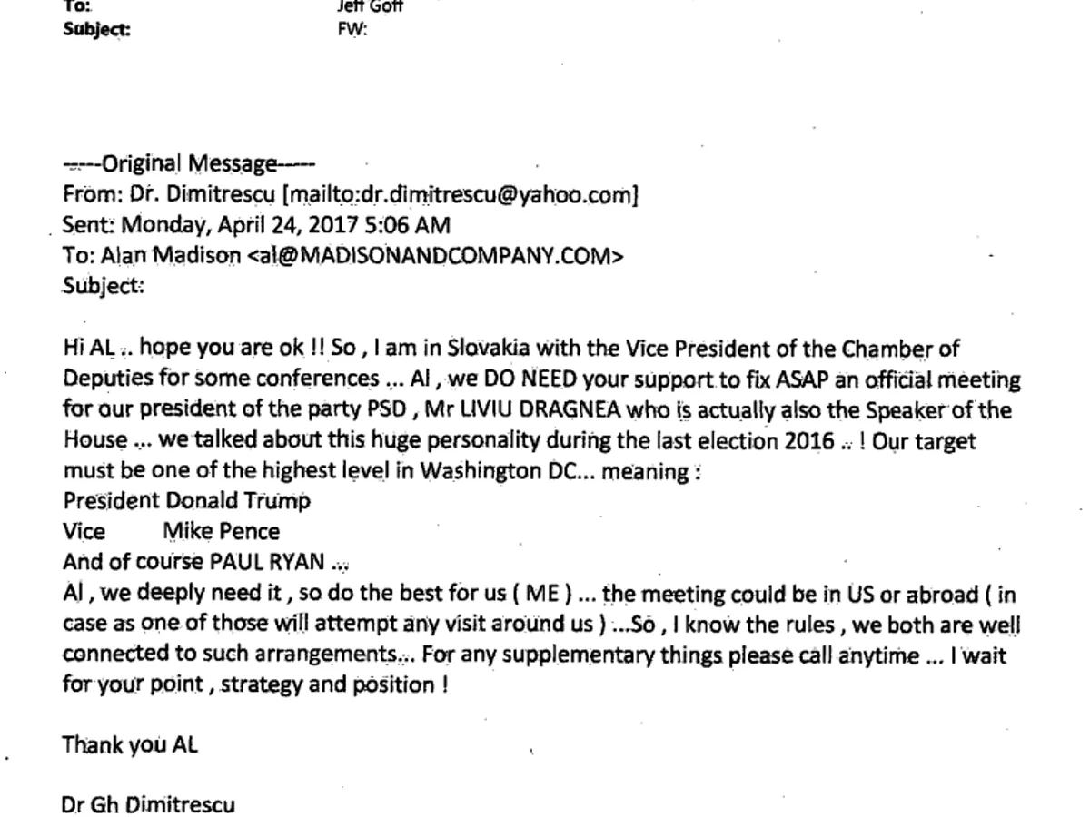 Deși a plătit PSD, lobby-iștii americani și-au intitulat e-mail-ul de răspuns "Dragnea invoice" (factura lui Dragnea).
