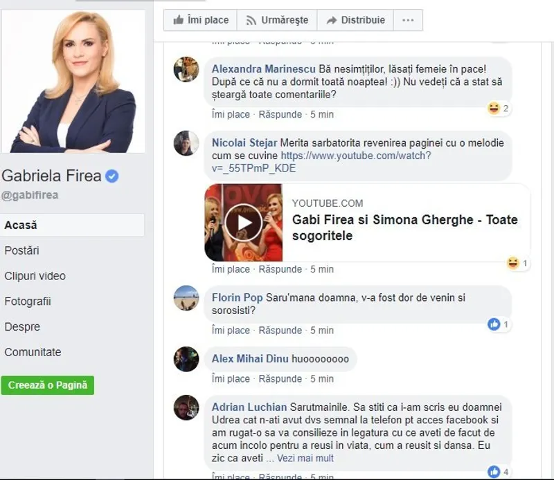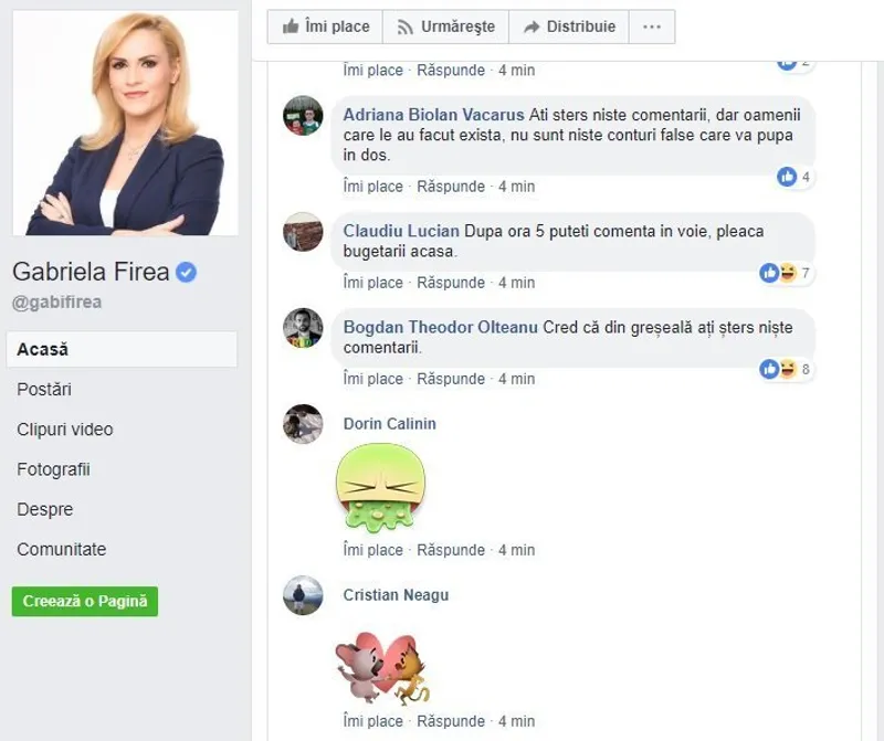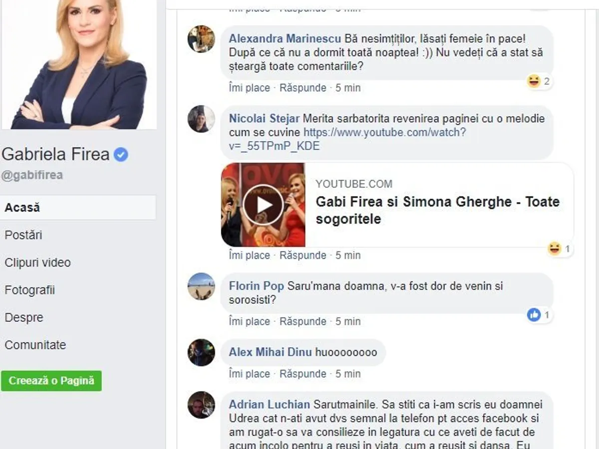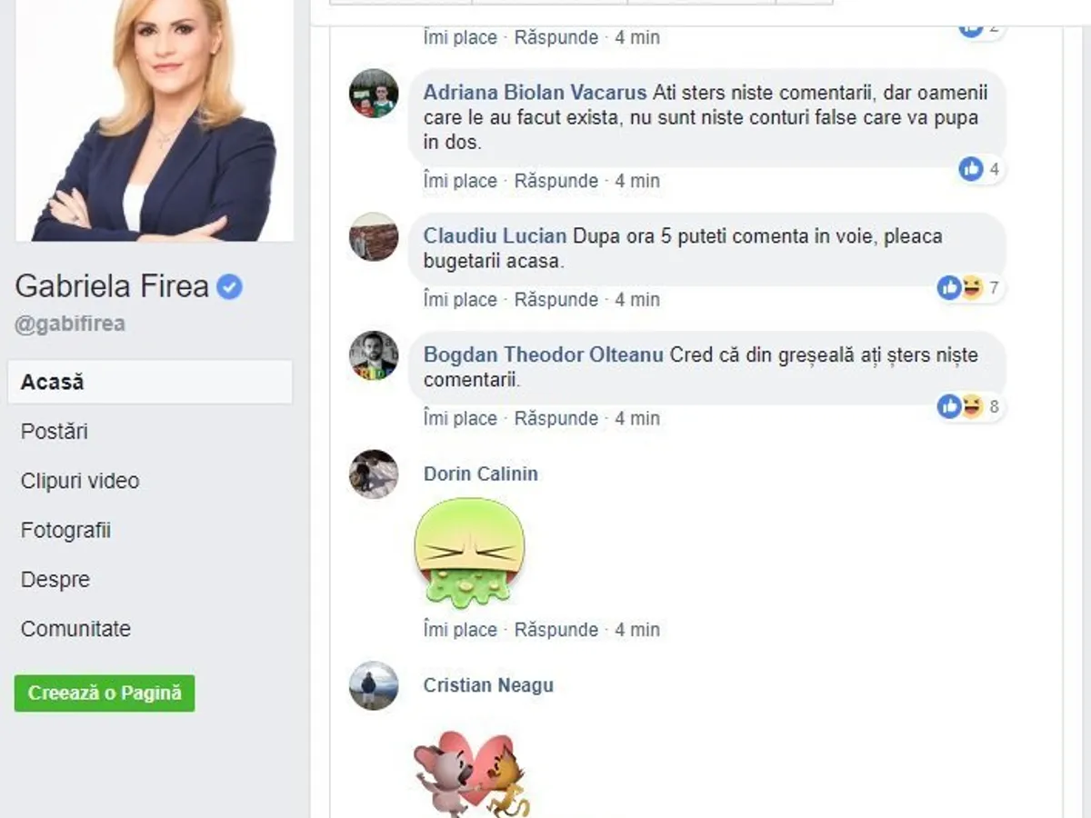UPDATE 2. Firea și-a deschis, pentru a doua oară pagina de Facebook după ce îndepărtat comentariile negative. Acestea au apărut, însă, după câteva minute.