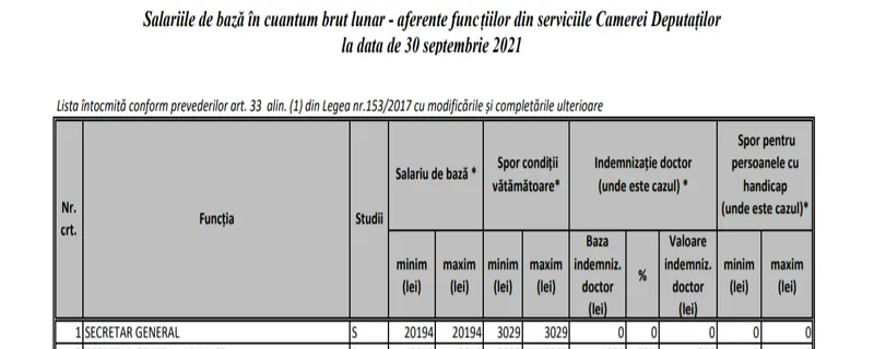 20.000 lei/lună salariu și 3.000 lei/sporuri pentru secretarul general al deputaților, propus de PSD