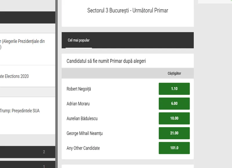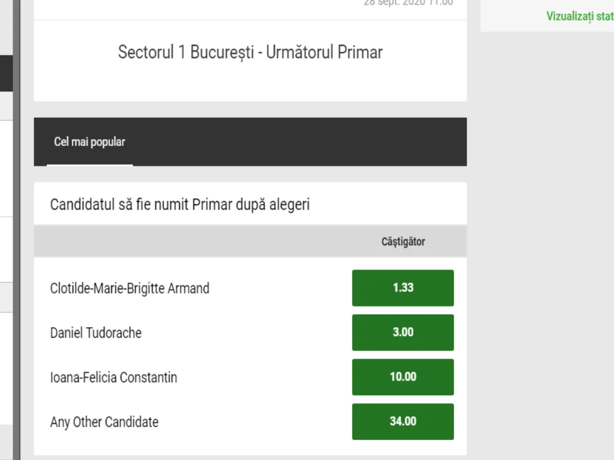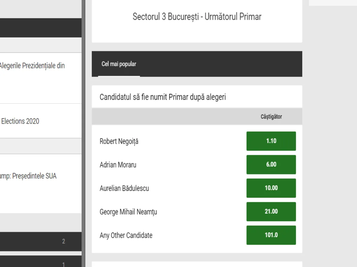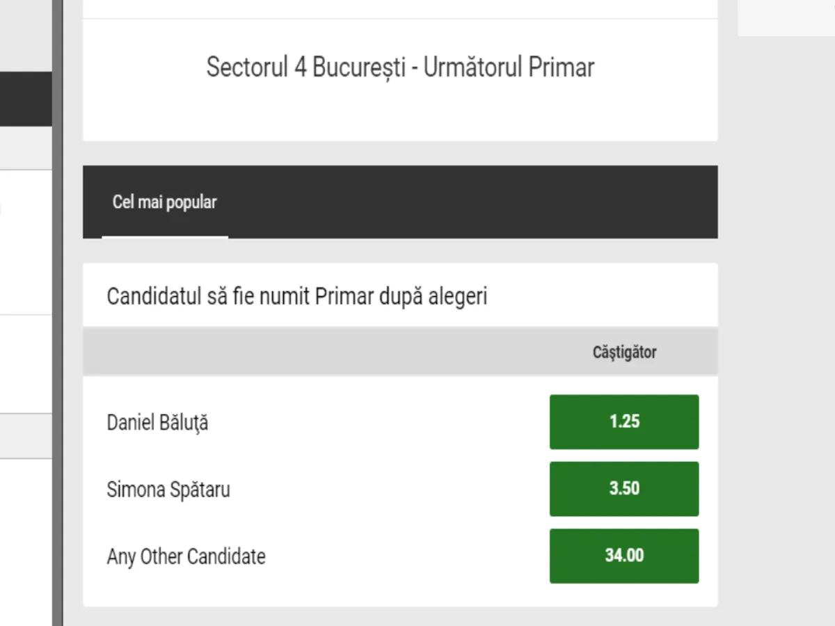 Pentru prima oară o specialiștii unei case de pariuri analizează șansele și oferă cote candidaților la cele șase primării de sector.