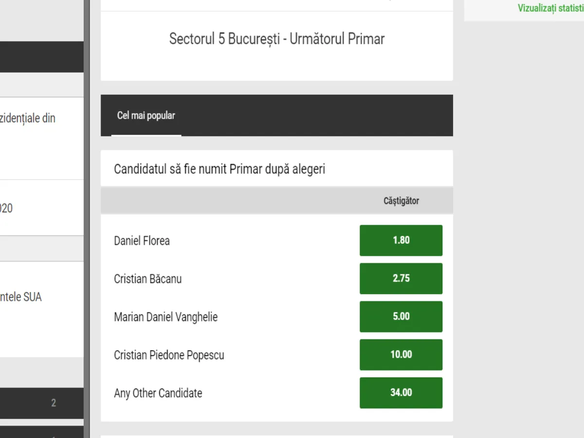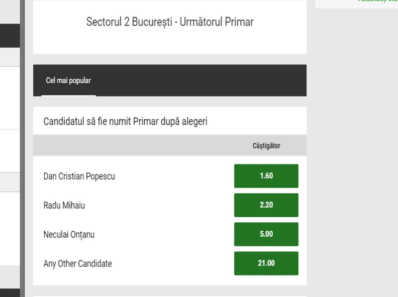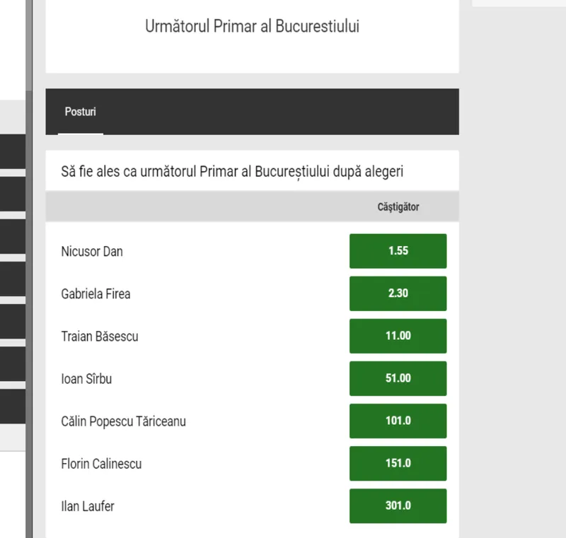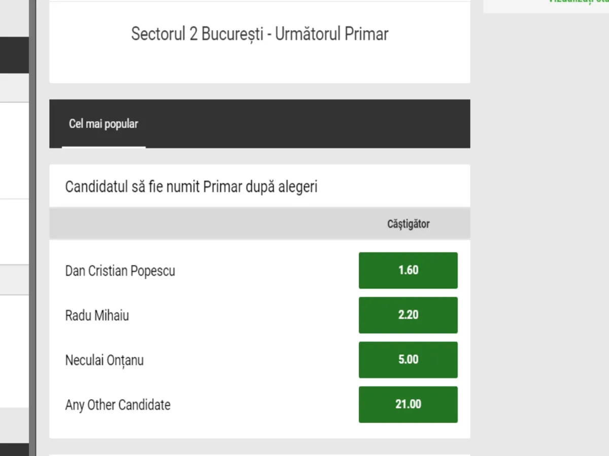 Pentru prima oară o specialiștii unei case de pariuri analizează șansele și oferă cote candidaților la cele șase primării de sector.