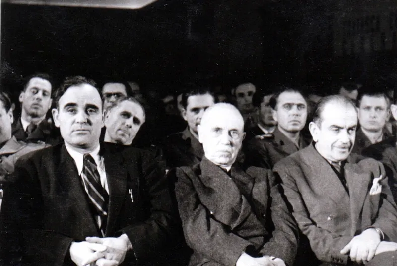 C.I. Parhon, în mijloc, avându-l în dreapta sa pe Gheorghe Gheorghiu-Dej - Foto: Fototeca online a comunismului românesc/cota 259/1945