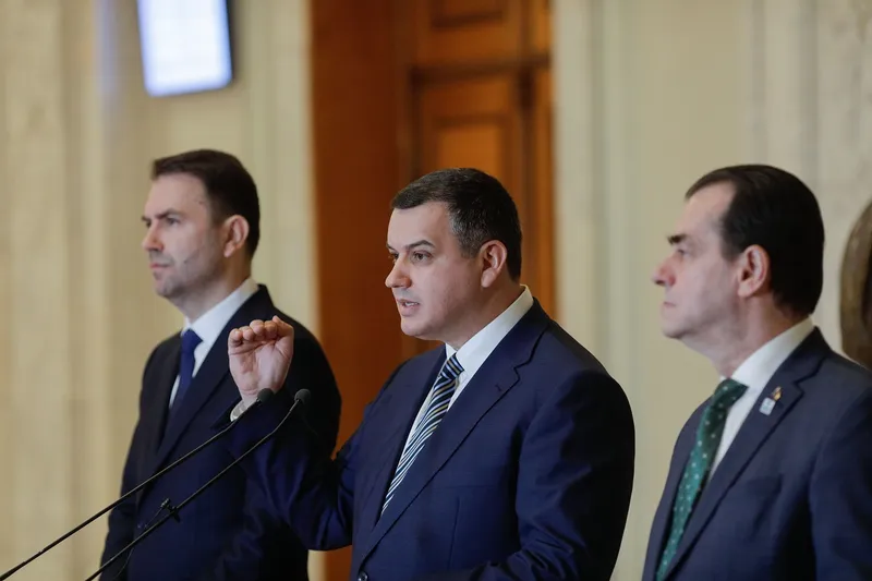 Liderii celor trei partide din alianța „Dreapta Unită”: Cătălin Drulă (USR), Eugen Tomac (PMP) și Ludovic Orban (Forța Dreptei) - Foto: INQUAM PHOTOS/George Călin