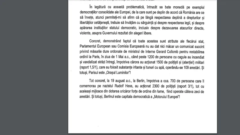 După ce ne asigură că guvernul PSD și-a făcut treaba, Brăiloiu trece la înfierarea Comisie Europene care are ce are doar cu biata noastră țară, iar la violențele din Germania, Franța sau Grecia a închis ochii. (vezi facsimil).