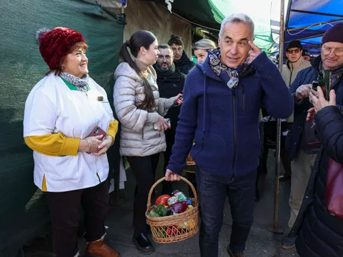 Călin Georgescu a purtat geacă Mufflon de 1.200 lei la piață, de unde și-a luat produse tradiționale