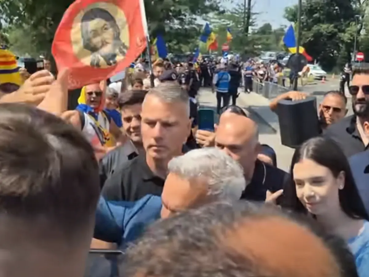 Atmosfera din fața secției de poliție a semănat mai degrabă cu un miting electoral decât cu un moment de justiție. Copiii i-au cerut autografe, susținătorii au scandat „Călin Georgescu, președinte!”, iar muzica de campanie completa tabloul sinistru.