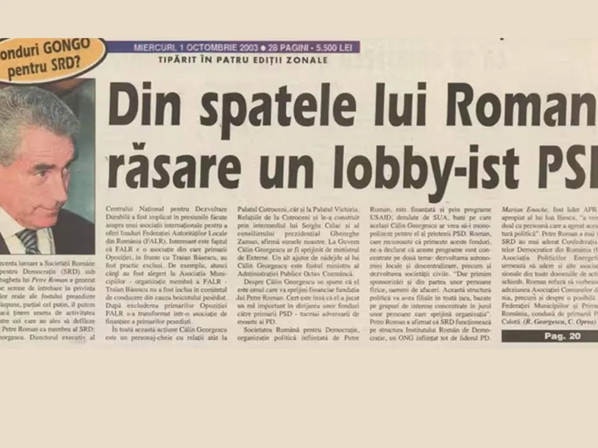 Un alt episod controversat din trecutul lui Călin Georgescu este legat de finanțarea Societății Române pentru Democrație (SRD), organizație inițiată de Petre Roman.