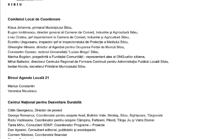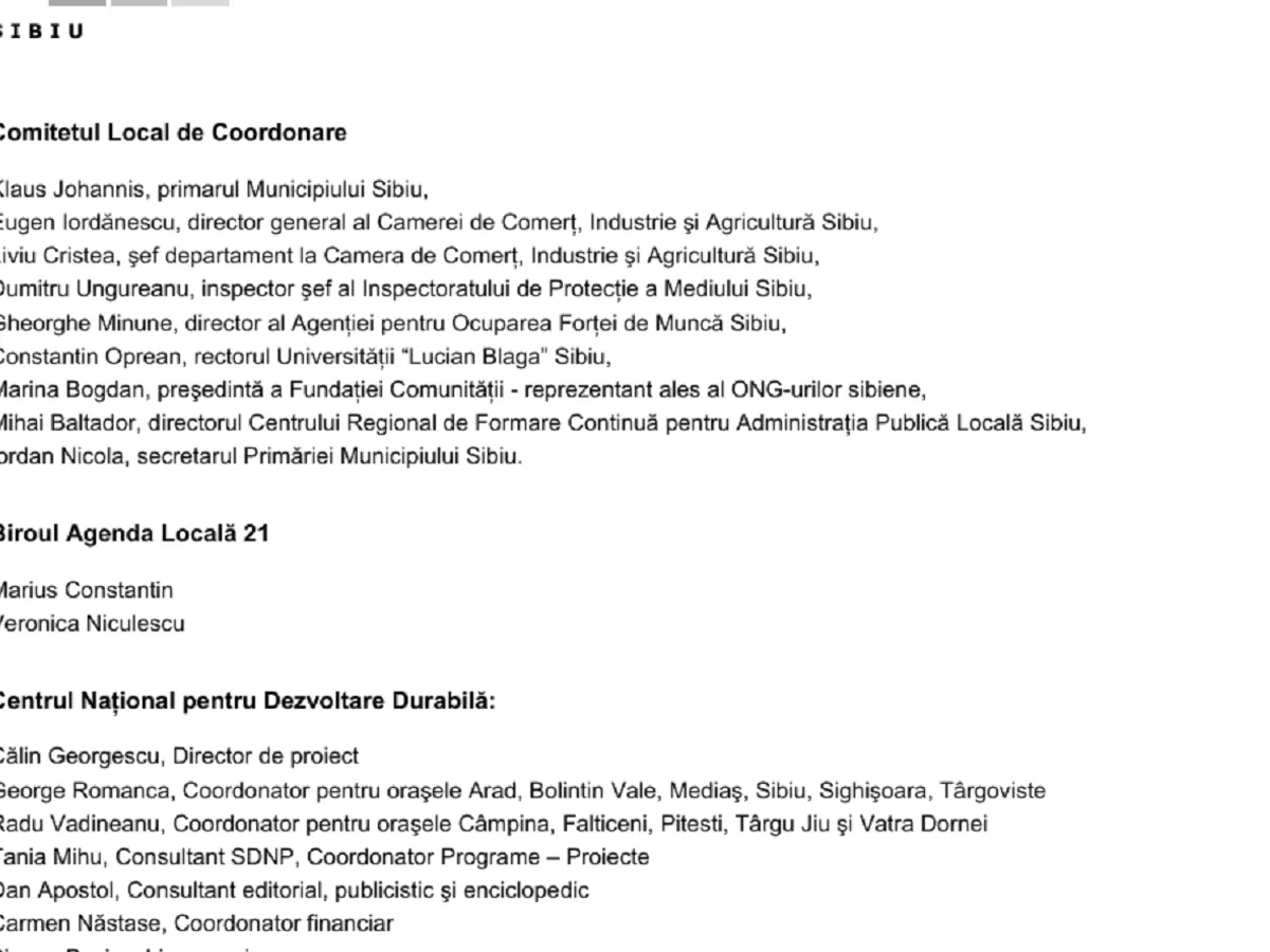 Pe același model, Călin Georgescu, a redactat, în calitate de Director de proiect, Planul de Dezvoltare Durabilă al orașului Sibiu. Era anul 2004, când primar la Sibiu era Klaus Iohannis.