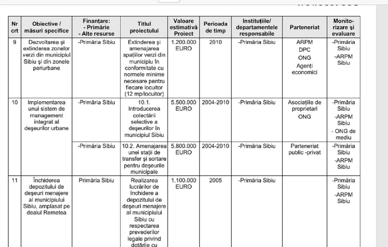 Proiectele au doar denumirea, suma de bani necesară și cine credea Georgescu că ar trebui să se ocupe de ele.