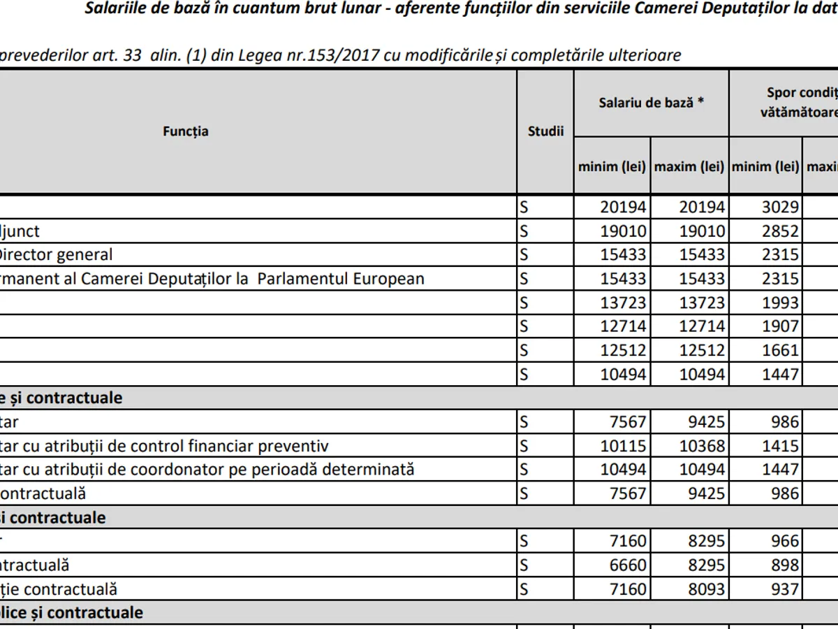 Și la Senat și la Camera Deputaților, angajații primesc sporuri de condiții grele de muncă. Secretarul Senatului și al Camerei Deputaților iau un spor lunat de peste 3.000 lei pe lună. Detalii AICI