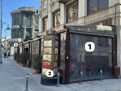- consideră că sintagma "fixate de fațadă" nu exclude existența unor stâlpi fixați de caldarâm și dacă tot avem stâlpi, de ce să nu închidem lateralele că e curent.