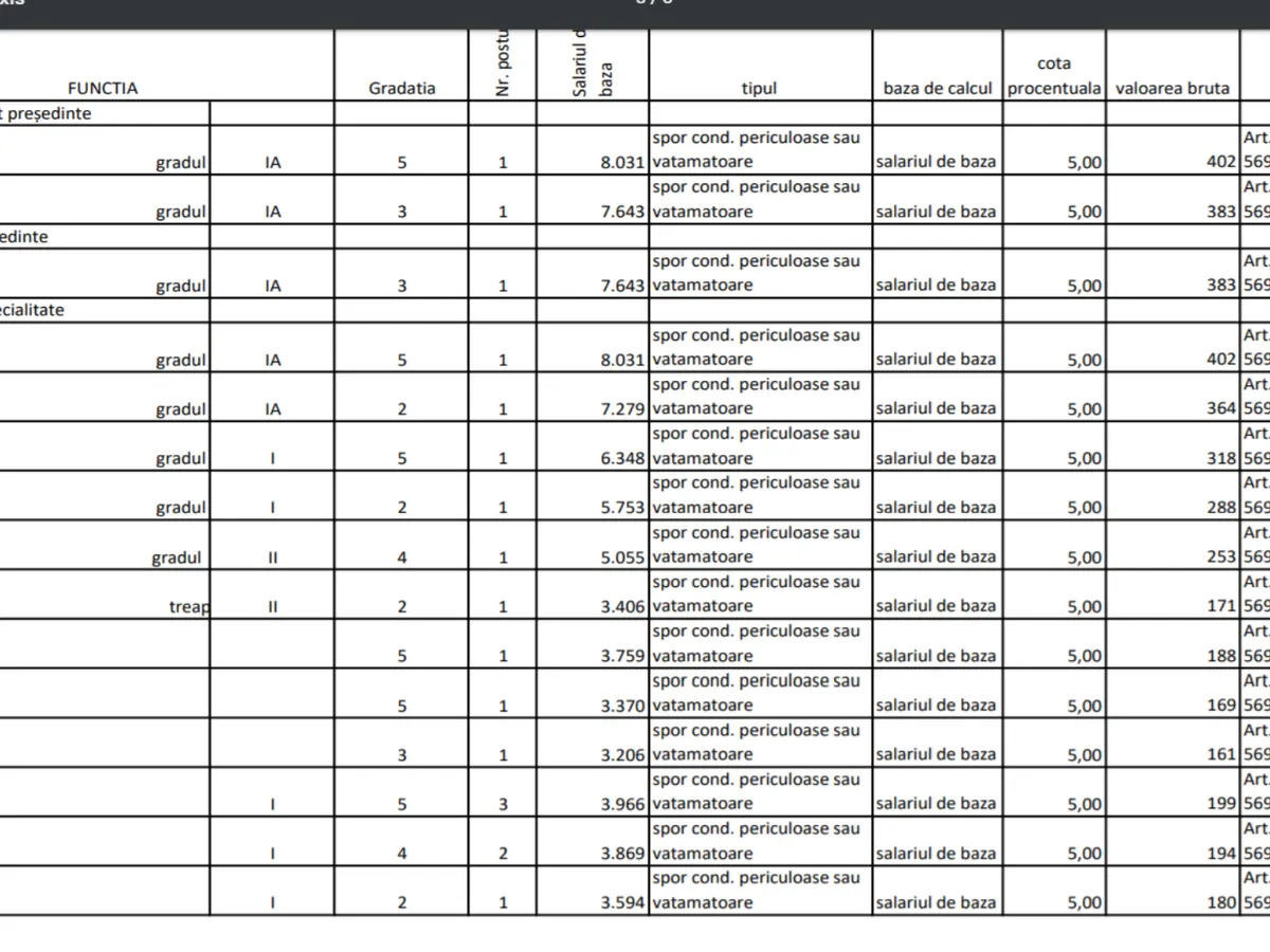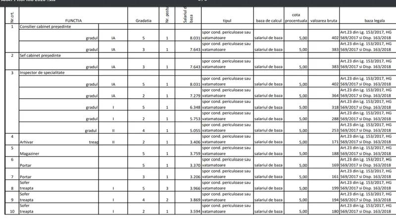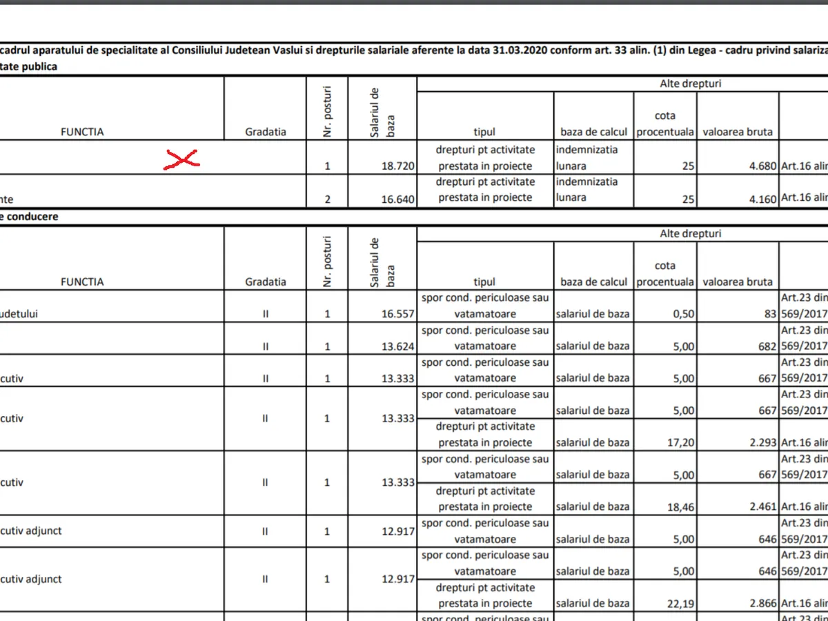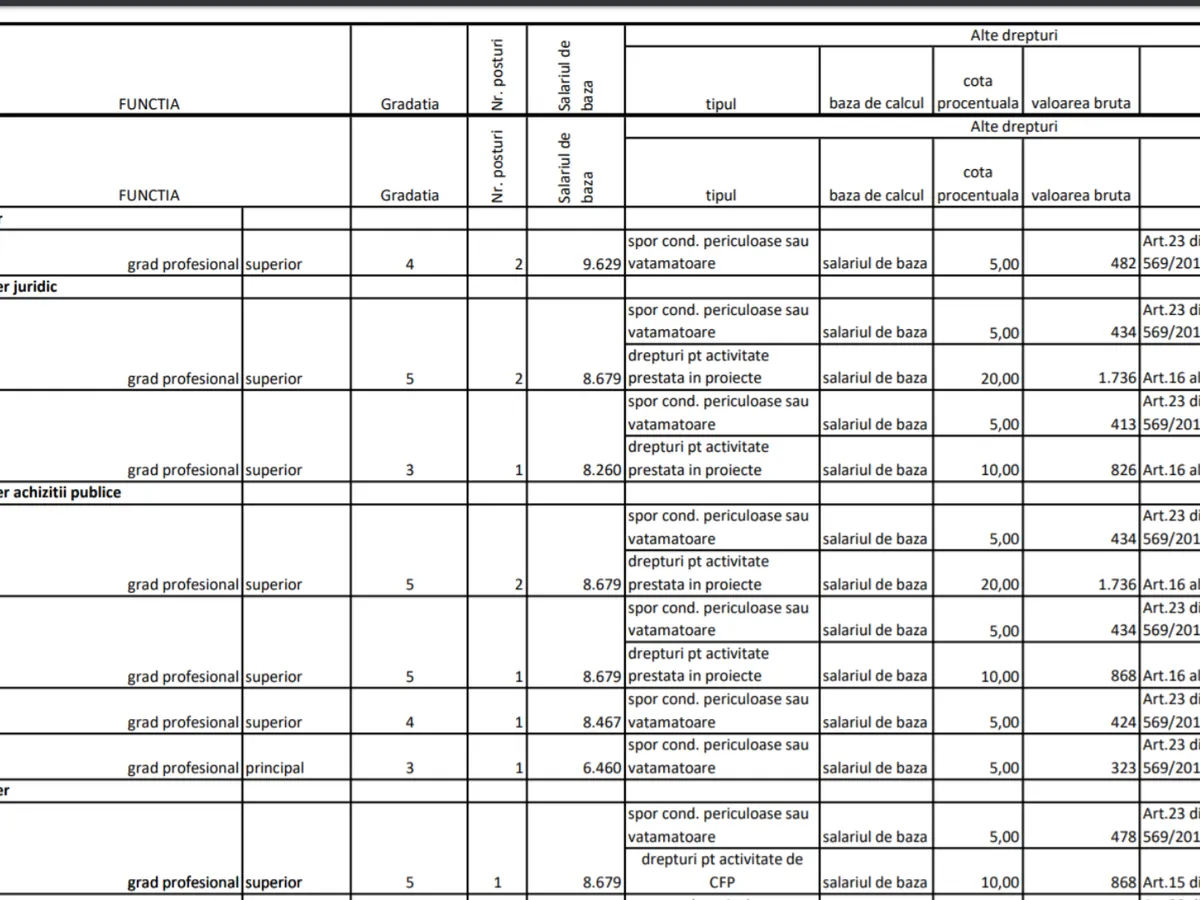 Directorul executiv câștigă 13.333 de lei la care se adaugă spor de condiții vătămătoare de 667 lei