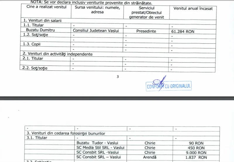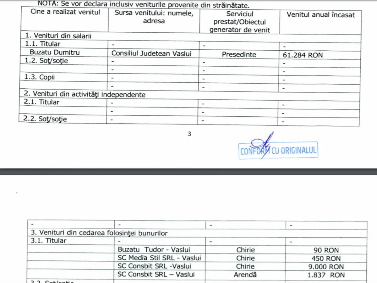 Cu un an înainte, la 31 martie 2019, Dumitru Buzatu câștiga aceeași sumă lunară, iar în martie 2018 cu 1.000 de lei, lunar, mai puțin.