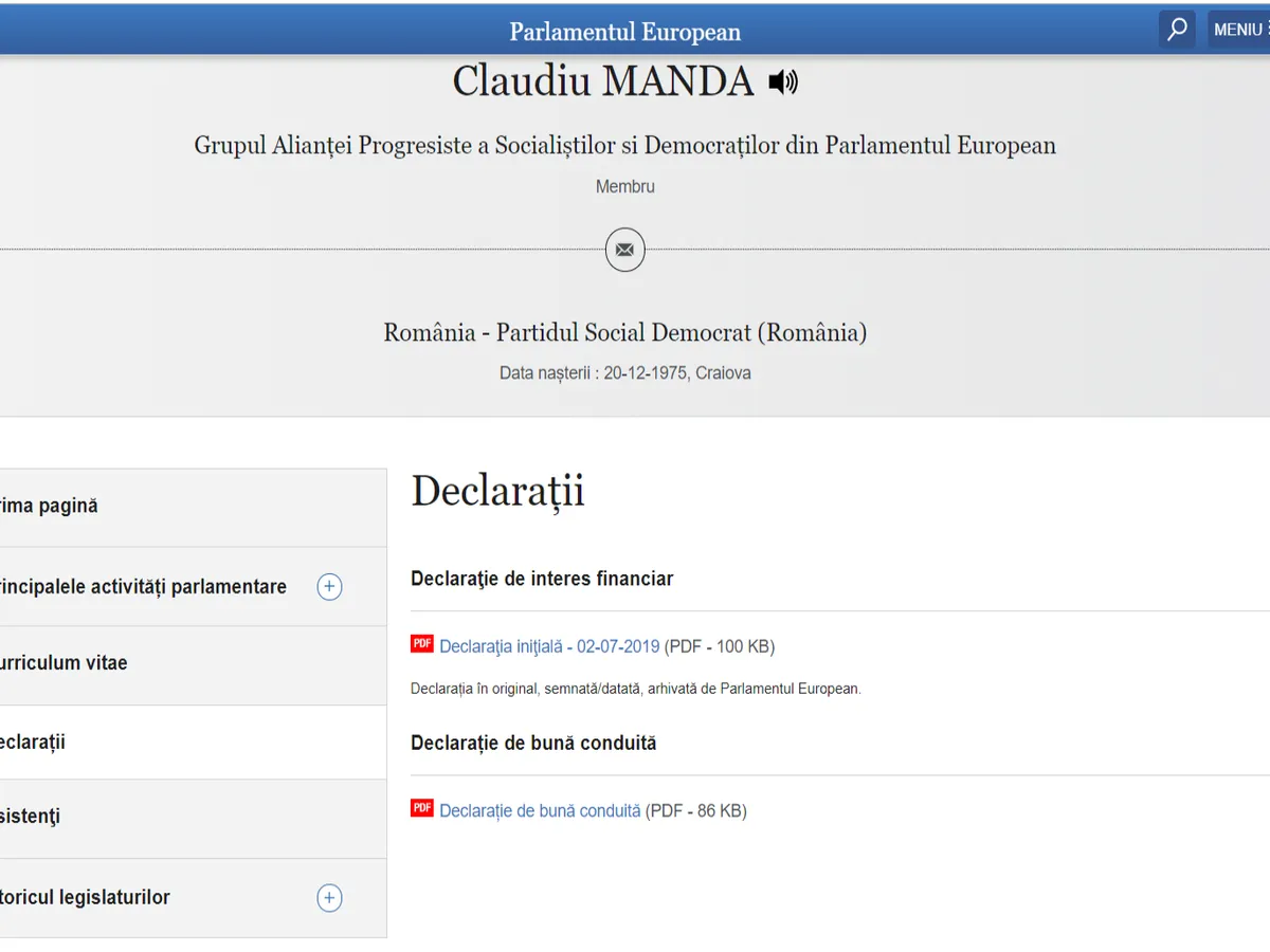 Claudiu Manda a deschis o singură dată gura în Parlamentul European. A încasat 35.000 euro