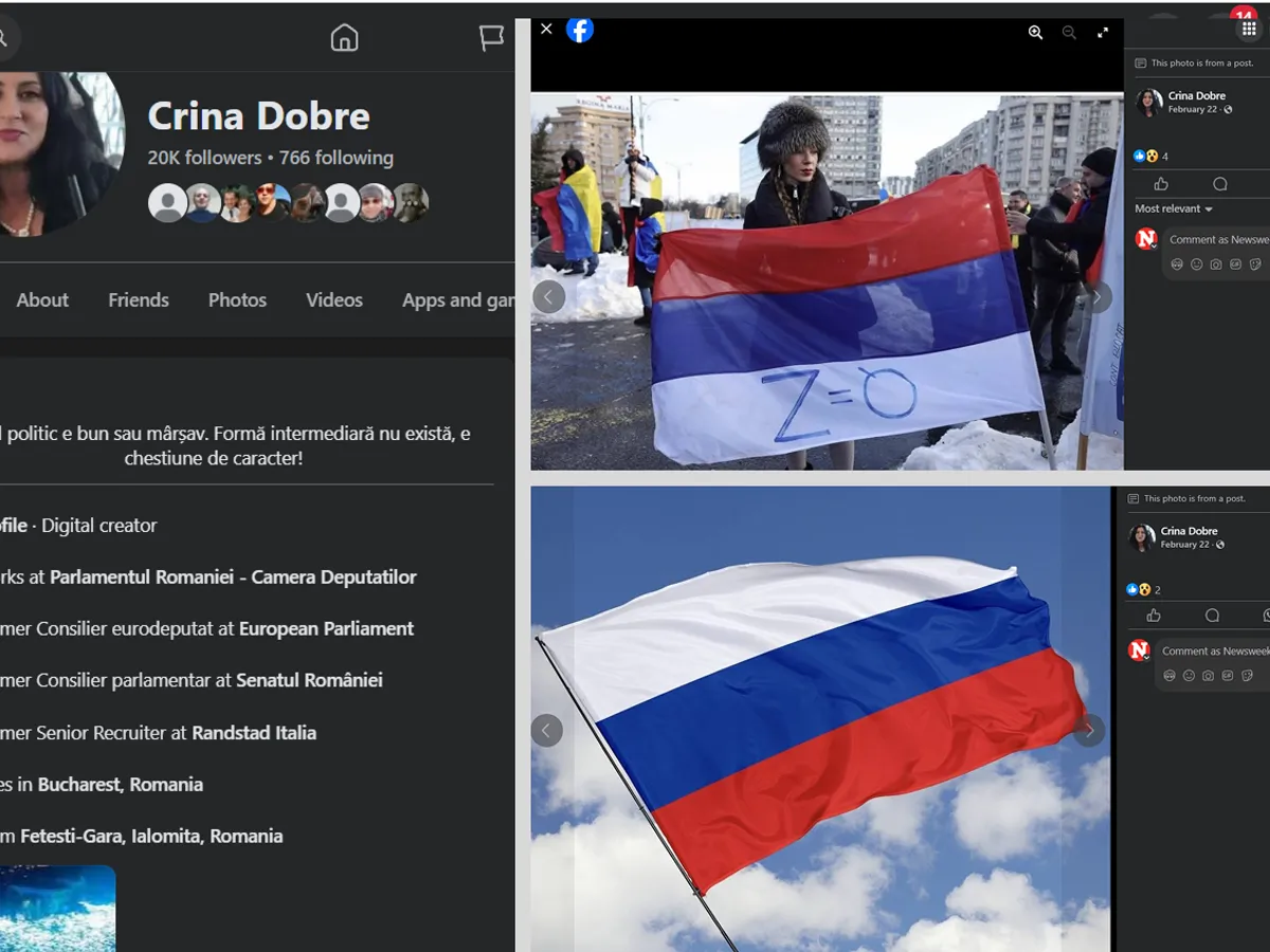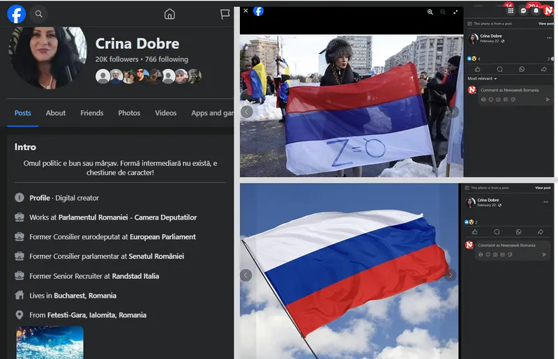 Alte două postări ale Crinei Dobre, trompeta Rusiei din anturajul AUR, sunt așa - simplu și direct cu steagul Rusiei. Una dintre fotografii, tot de la un protest organizat de AUR pentru susținerea lui Călin Georgescu.
