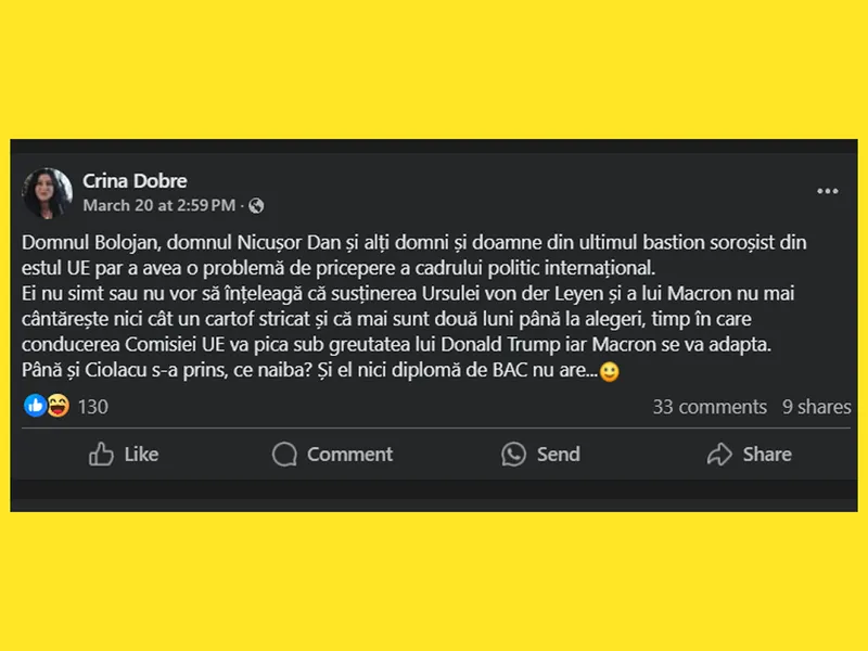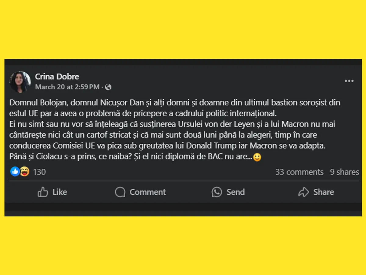 Până și Ciolacu s-a prins, ce naiba? Și el nici diplomă de BAC nu are...”.