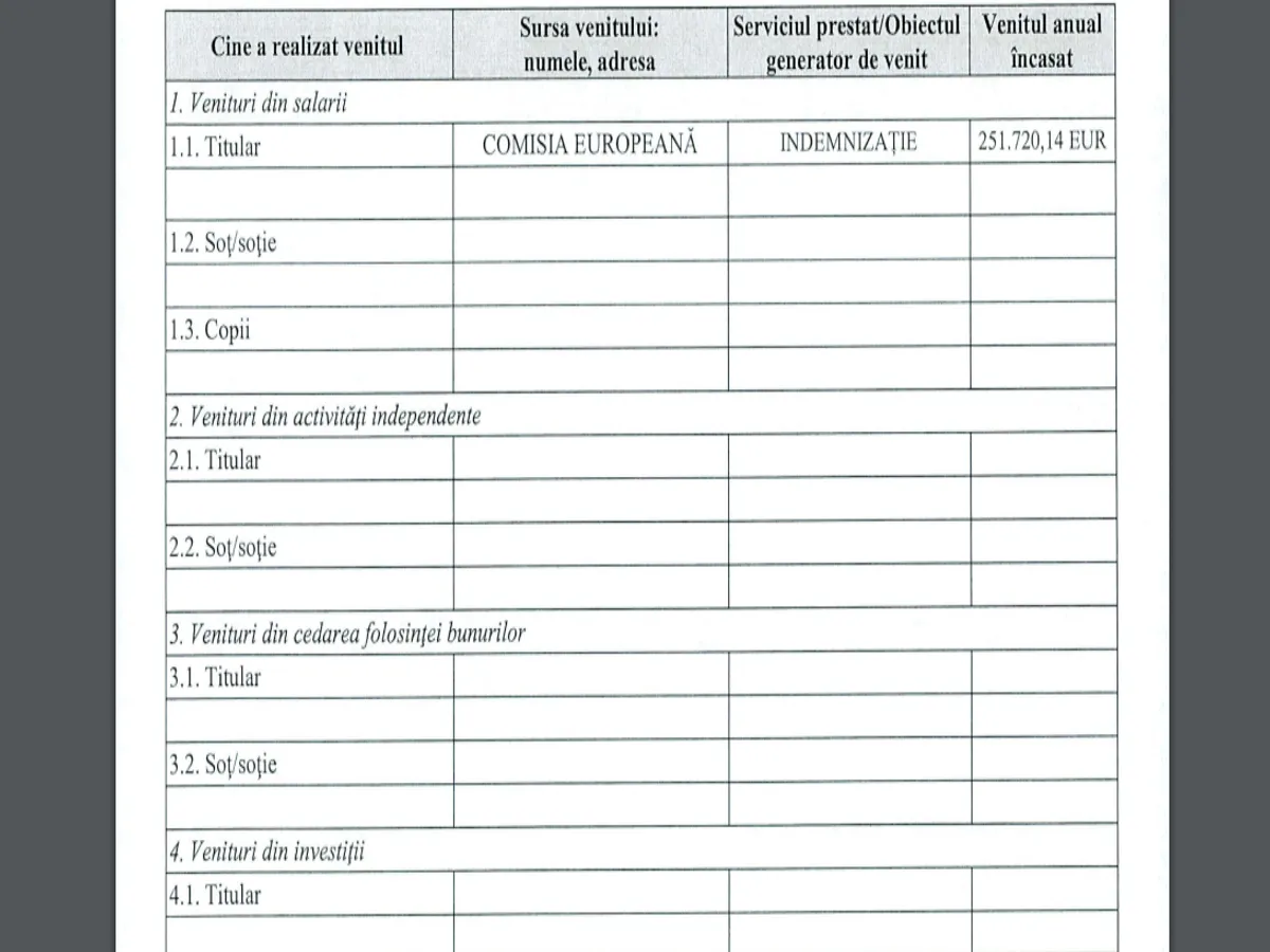 Potrivit ultimei declarații de avere, Adina Vălean câștigă, anual 250.000 de euro. În ultima declarație depusă de Adina Vălean, în anul 2021, Crin Antonescu apare că nu are niciun venit. Și nici nu primește vreo pensie, cum ar fi cea de parlamentar.