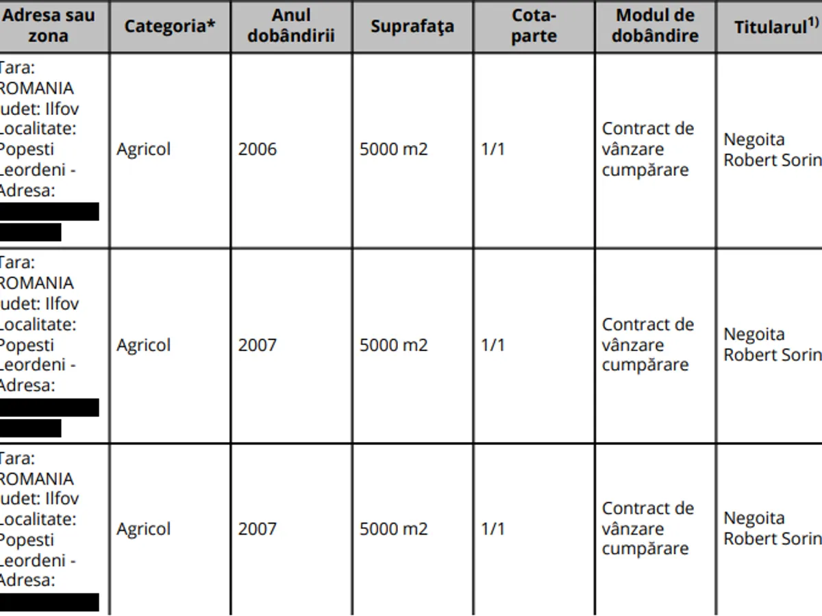 Primarul Sectorului 3, Robert Negoiță, deși este îngropat în datorii de aproape 62 de milioane de euro, deține în continuare zeci de mii de hectare de teren în București și Ilfov, nenumărate case și spații comerciale, potrivit declarației sale de avere.