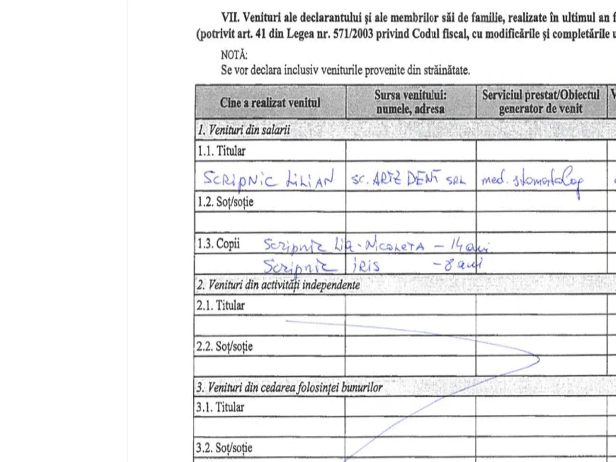 La finalul articolului se face referire la declarația de avere a deputatului. Cum interviul este din 2020, cifrele indicate de ziar se referă la situația financiară din 2019 a deputatului. Și, în 2019, Scripnic a câștigat la fel de puțin ca în 2020 din activitatea de medic stomatolog.
