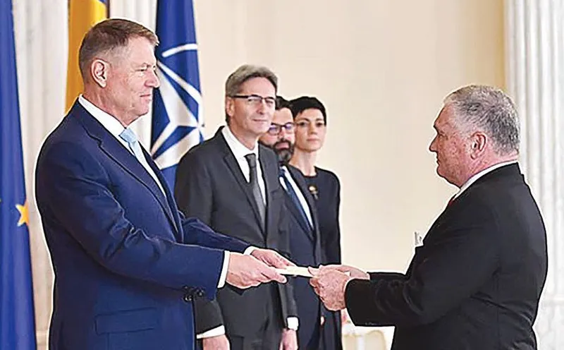 DECORAȚII Noul ambasador al SUA, Adrian Zuckerman, prezentând scrisorile de acreditare președintelui la Cotroceni (sus), pentru a-l înlocui pe predecesorul Hans Klemm, decorat de Administrația Prezidențială