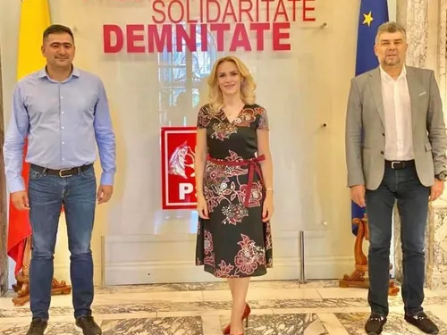 Postarea sa este însoţită de o fotografie în care apare alături de primarul Capitalei, Gabriela Firea, şi de preşedintele PSD, Marcel Ciolacu.
