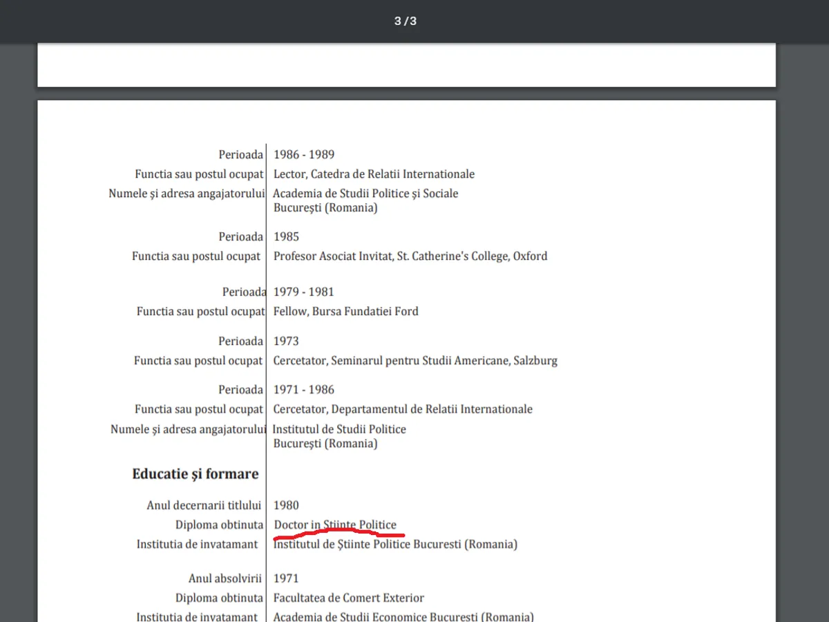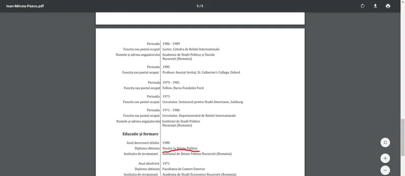 Dacă te uiți pe cv-ul lui Mircea Pașcu vei vedea că experiența sa educațională s-a desăvârșit în comunism. La cel mai înalt nivel. În 1971 a terminat facultatea de Comerț Exterior, Academia de Studii Economice București. Mircea Pașcu obține titlul de doctor în Științe Politice în 1980. El susține, potrivit cv-ului oficial, că l-a obținut la „Instiutul de Științe Politice”, București. Se întâmpla, în timp ce era cercetător la Departamentul Relații Internaționale de la „Institutul de Studii Politice”, București.