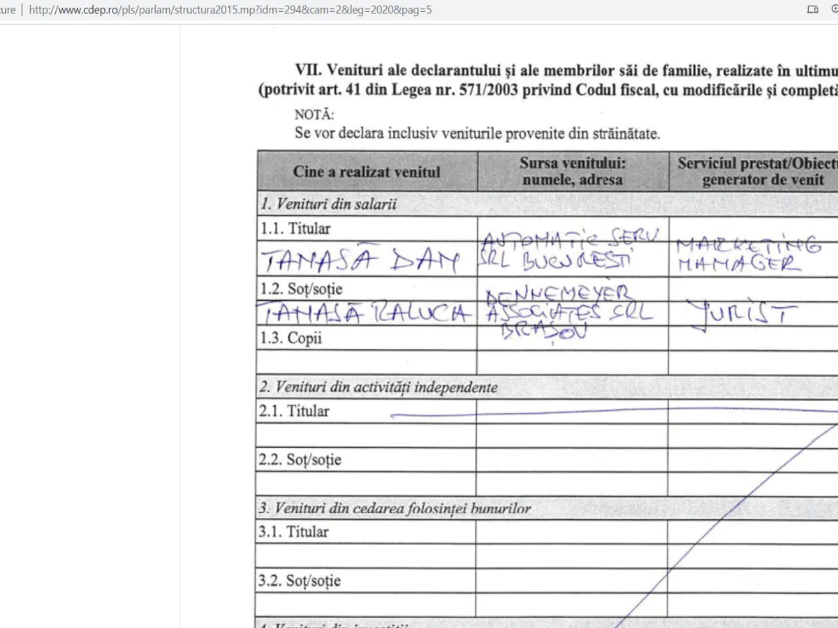 Potrivit Declarației sale de avere, în anul 2019, a câștigat suma de 7.500 de lei ca marketing manager la firma Automatic Serv București. Adică, 625 de lei pe lună. Compania a avut, în 2019, un angajat și o pierdere de 153.272 lei.