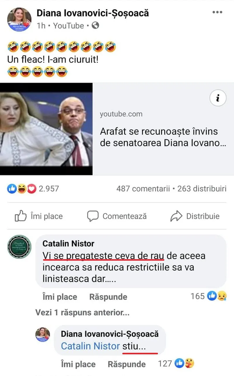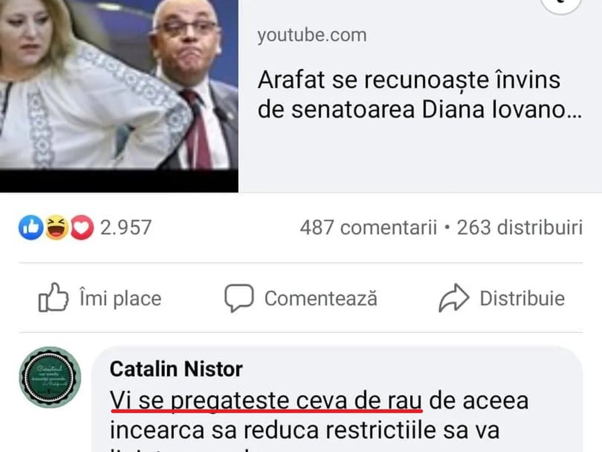 „Vi se pregătește ceva de rău de aceea încearcă să reducă restricțiile să vă liniștească dar…”, i-a scris senatoareai Cătălin Nistor.