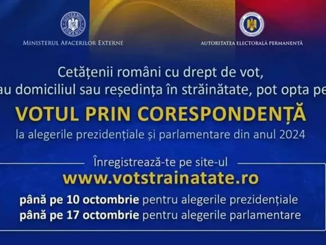 Pentru cei care doresc să voteze la alegerile pentru Președintele României, termenul limită de înregistrare ca alegător prin corespondență a fost 10 octombrie.