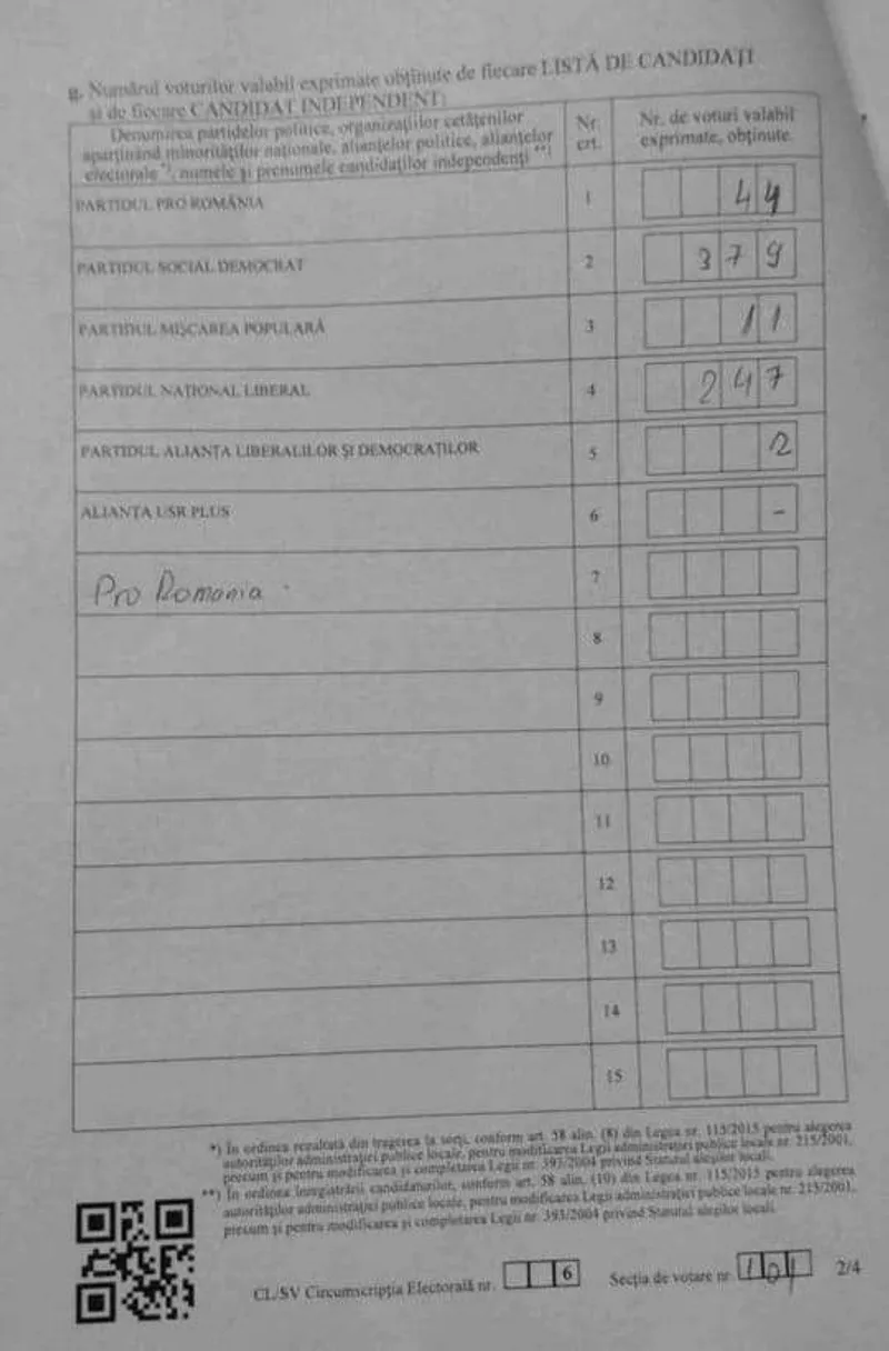 DOCUMENT Candidatul USR-PLUS la Piatra Olt reclamă că nu și-a găsit voturile familiei. A obținut 0%