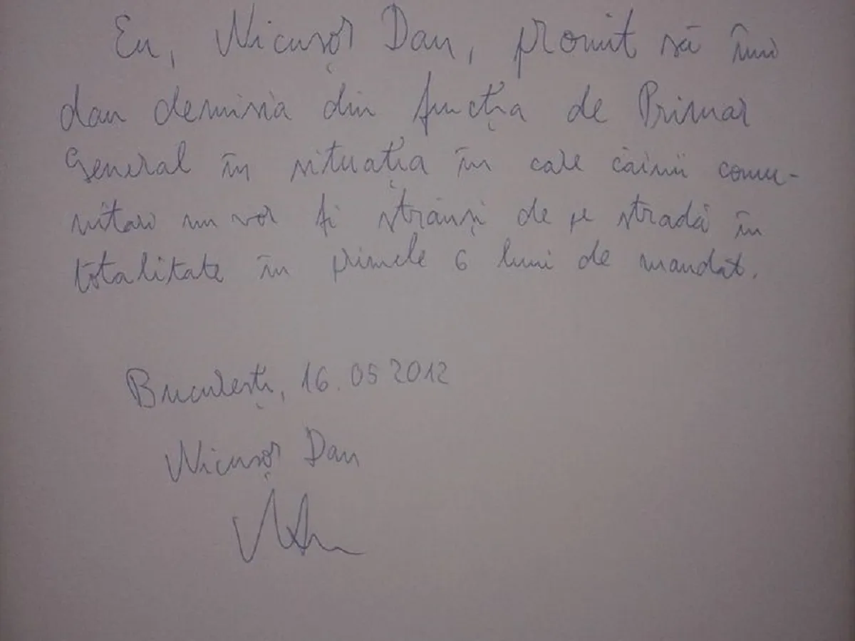 DOCUMENT Nicușor Dan a semnat în alb că va demisiona dacă nu va strânge câinii comunitari