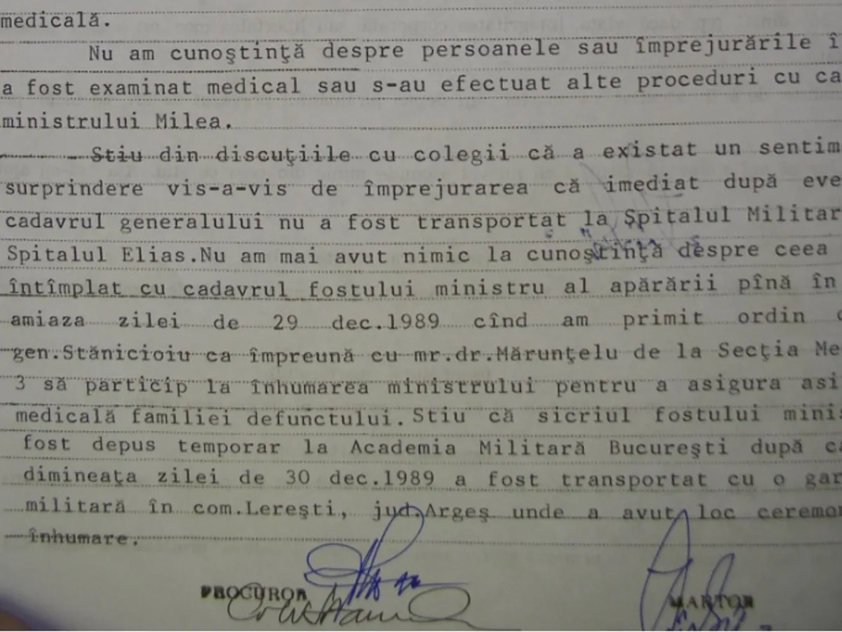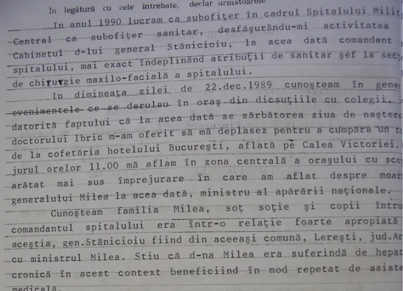 Depoziția a fost obținută de către fostul jurnalist de investigații de la „Jurnalul Național”, Răzvan Belciuganu, care ne-a pus la dispoziție documentele spre publicare în exclusivitate. Urmare a dezvăluirilor jurnalistului despre Revoluția din '89, dosarul sinuciderii gen. Vasile Milea a fost redeschis de procurorii militari.