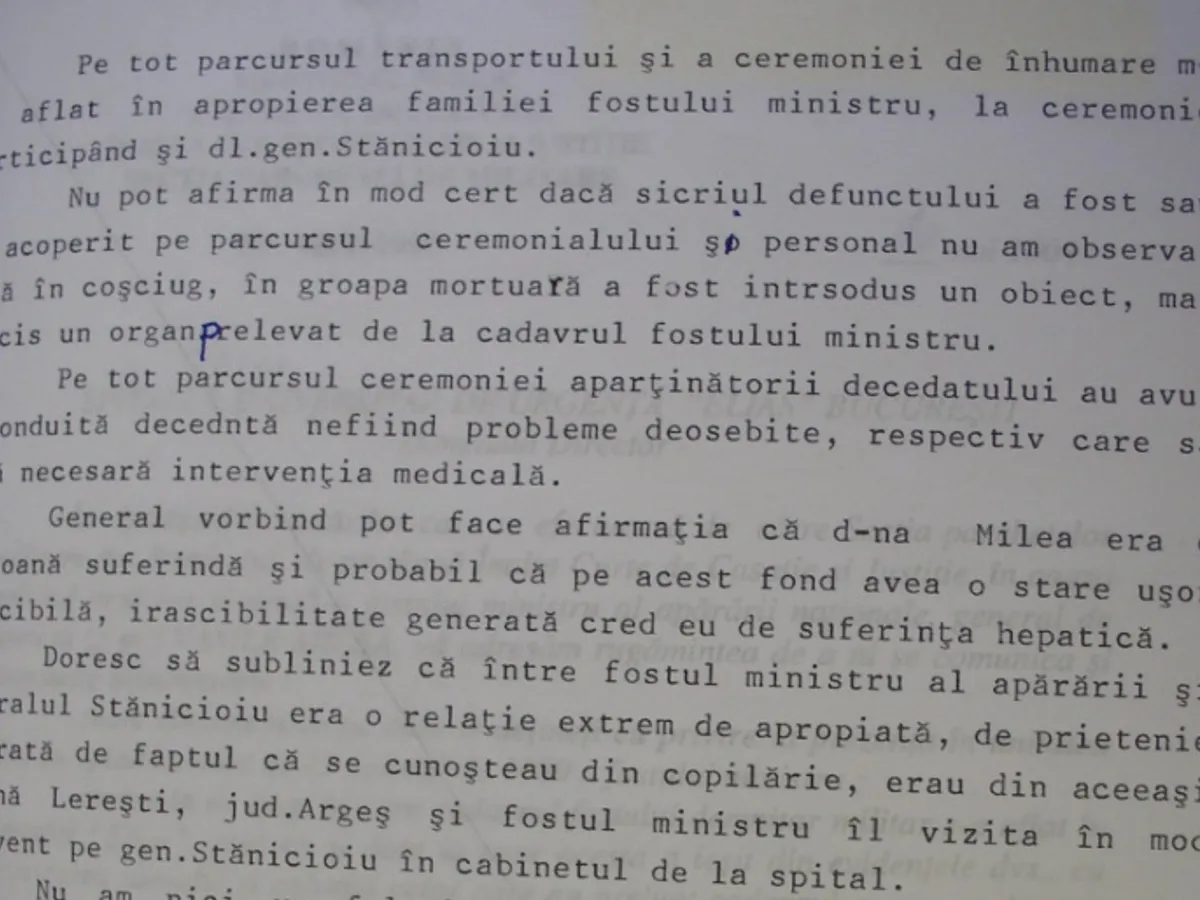 La un moment dat, gen. Sîrbu face o afirmație interesantă: „...personal nu am observat dacă în coșciug, în groapa mortuară a fost introdus un obiect, mai precis un organ prelevat de la cadavrul fostului ministru (al Apărării- n.red.).”