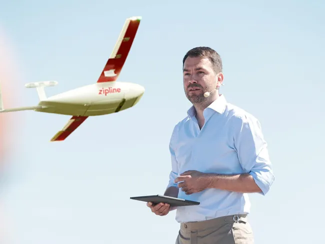 Zipline este o companie americană care proiectează, produce și operează drone de livrare. Compania operează centre de distribuție în Rwanda, Ghana, Japonia și Statele Unite, cu acorduri semnate pentru a începe să presteze servicii în Nigeria, Coasta de Fildeș și Kenya. Începând cu aprilie 2022, dronele sale au efectuat peste 20 de milioane de mile de zboruri în 275.000 de livrări comerciale.