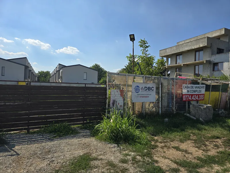 În curte câteva case sunt la roșu, altele au deja tencuiala pusă însă nimeni nu pare să locuiască încă aici.