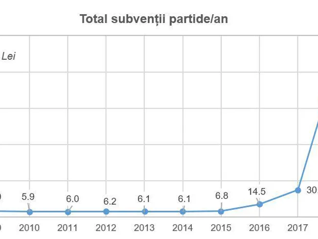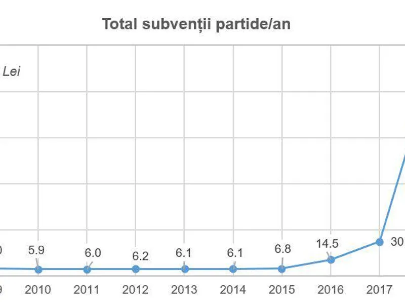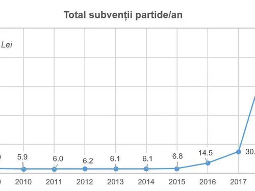 În 2018, România a subvenționat principalele partide cu 37 de milioane de euro, arată un studiu Expert Forum. Legislaţia modificată în 2018 a condus la o creştere de peste 20 de ori faţă de subvenția alocată partidelor în urmă cu 10 ani, mult peste rata inflației.