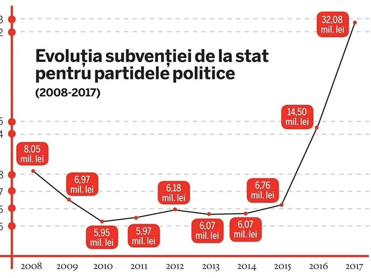 Bugetul de stat a acordat subvenții de 127 de milioane de lei către partidele parlamentare, în primele 10 luni din acest an.