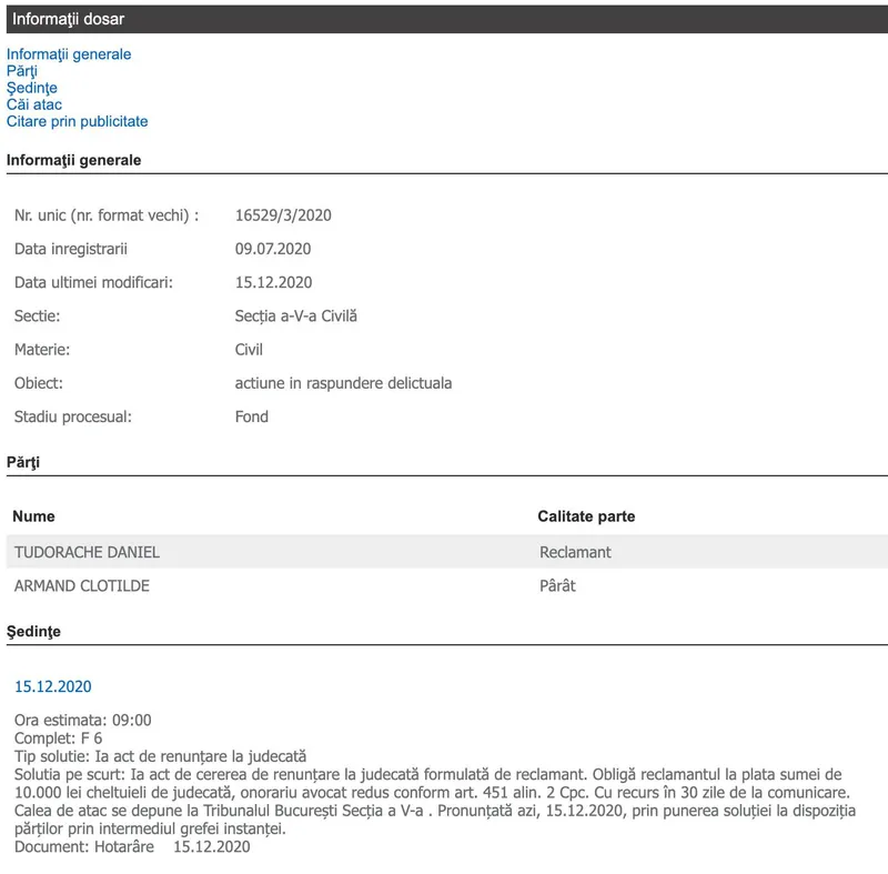 Și ce să vezi? Fostul primar a renunțat astăzi la procesul în care cerea daune de 113 milioane de lei. În schimb, instanța ''obligă reclamantul la plata sumei de 10.000 lei cheltuieli de judecată'', a scris Armand pe Facebook.