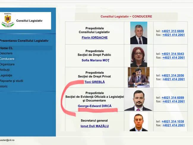 Fostul senator USR George Dărcă a devenit, oficial, preşedintele Secţiei de Evidenţă Oficială a Legislaţiei din cadrul Consiliului Legislativ. El îi este subordonat lui Florin Iordache și este coleg cu Toni Greblă.