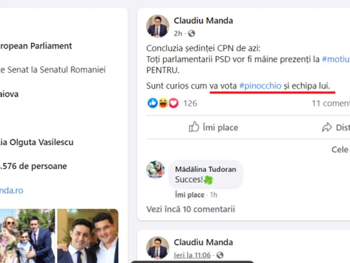 Sunt curios cum va vota #pinocchio și echipa lui”, a scris Claudiu Manda.