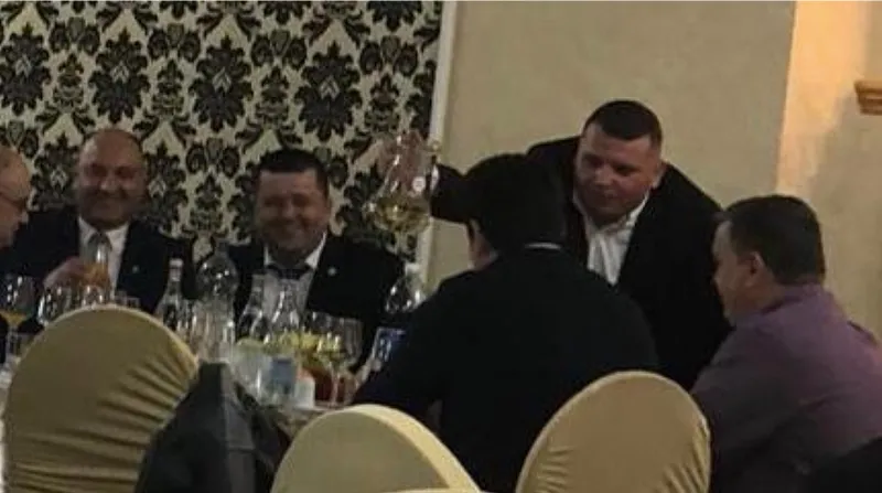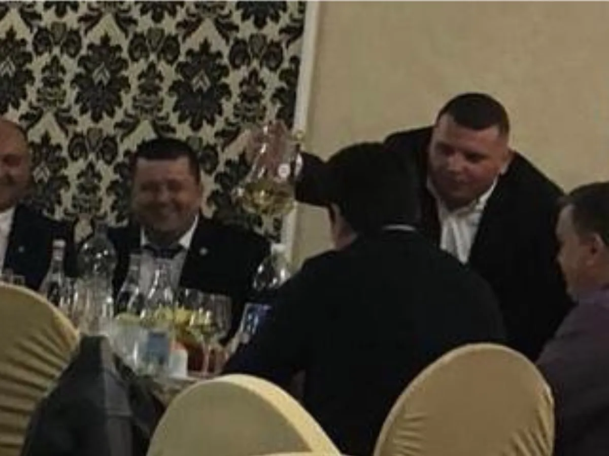 FOTO Primarul Mircia Gutău bea cu șefii Poliției. Adjunctul Poliției îi toarnă vin cu carafa